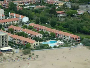 Cavallino-Treporti. Die Ferienwohnung befindet sich in einer Residenz, auf einem Gartengrundstück. Besteht aus 3 Reihenhäusern mit insgesamt 74 Appartments. Parkplatz (für 1 Pkw) auf dem Grundstück.