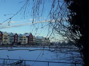 Das Holzteichquartier befindet sich in ruhiger Wohnlage zur angrenzenden Museumswerft und dem Museumshafen. Dort befinden sich fußläufig Restaurants und Bars am Wasser. Weiter die Salinenstraße entlang über eine Fußgängerbrücke ist in ein paar Gehminuten der historische Stadtkern zu erreichen mit dem Marktplatz und all den diversen Einkaufsmöglichkeiten, Arztpraxen und weiteren Angeboten des täglichen Bedarfs.Im 4km entfernten Neuenkirchen befindet sich ein Einkaufszentrum.